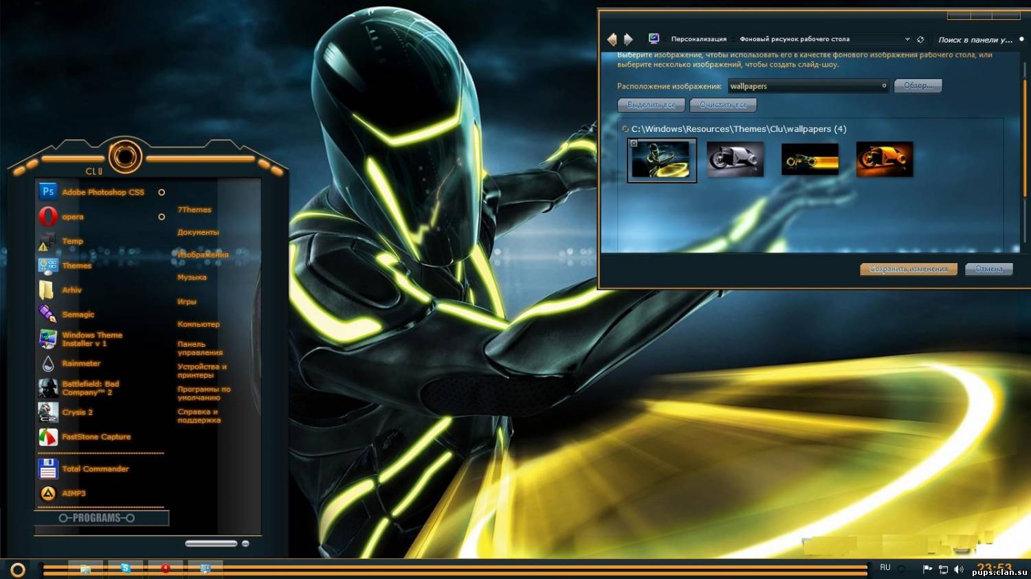 Themes for Windows 7 - Movies And Cartoons - собранная с различных веб-ресурсов коллекция тем для обладателей операционной системы Windows 7. Тема - Фильмы и мульты. Опосля установки в неких темах у Вас изменится абсолютно все - курсоры, указатели мыши, фоновый набросок, звуки , меню запуск, иконки. Список тем: Prometheus - оформление в стиле "Прометей" Event Horizon (4 цветовых варианта) MS: One - Maximum Security (Blue,Green,Red) CLONE red and blue Rise of the Primes Blue Resident Evil 4 Afterlife Clu - оранжевая тема по фильму "Tron" Pirates of the Caribbean Tron Legacy - тема по фильму трон Star Trek Nemesis - Чужой против хищника Resident Evil EXTINCION Silver surfer - Серебряная тема на рабочий стол Каратель - Темная тема с черепами Тема из мультфильма Rio Властелин колец CAUTION - Тема из фильма WALL-E X-MEN от bbosa SKyLiNe Predator - Тема из фильма Хищник Transformers 3 - Тема с Трансформерами Dark Knight Tempelier Черный человек паук Tron Legacy Винни Пух Umbrella Corp